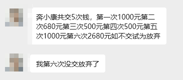 此前,就有网友反馈,多次被忽悠交钱,在经过5次之后,她听我们劝,停了下来,避免进一步损失。