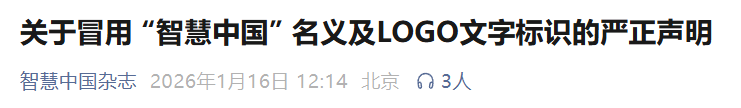 1月16日,智慧中国杂志社发布声明,称该项目是冒用其名义和LOGO的非法行为。