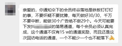 宣称“扫码走通道获得福雨”忽悠参与者,要求参与者每天在不同平台看30个广告、上传个人关键信息,甚至在某些平台进行刷脸认证——实则是骗取个人信息,倒卖给诈骗集团。